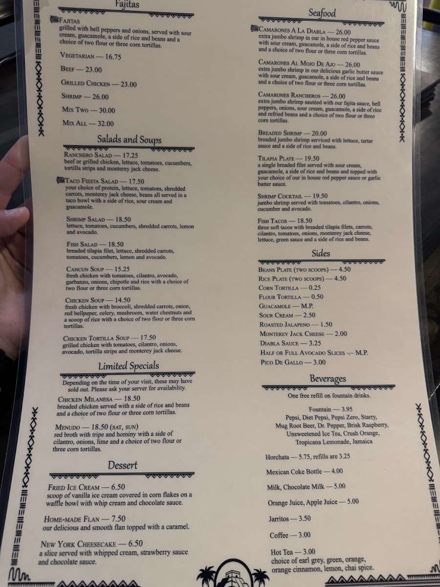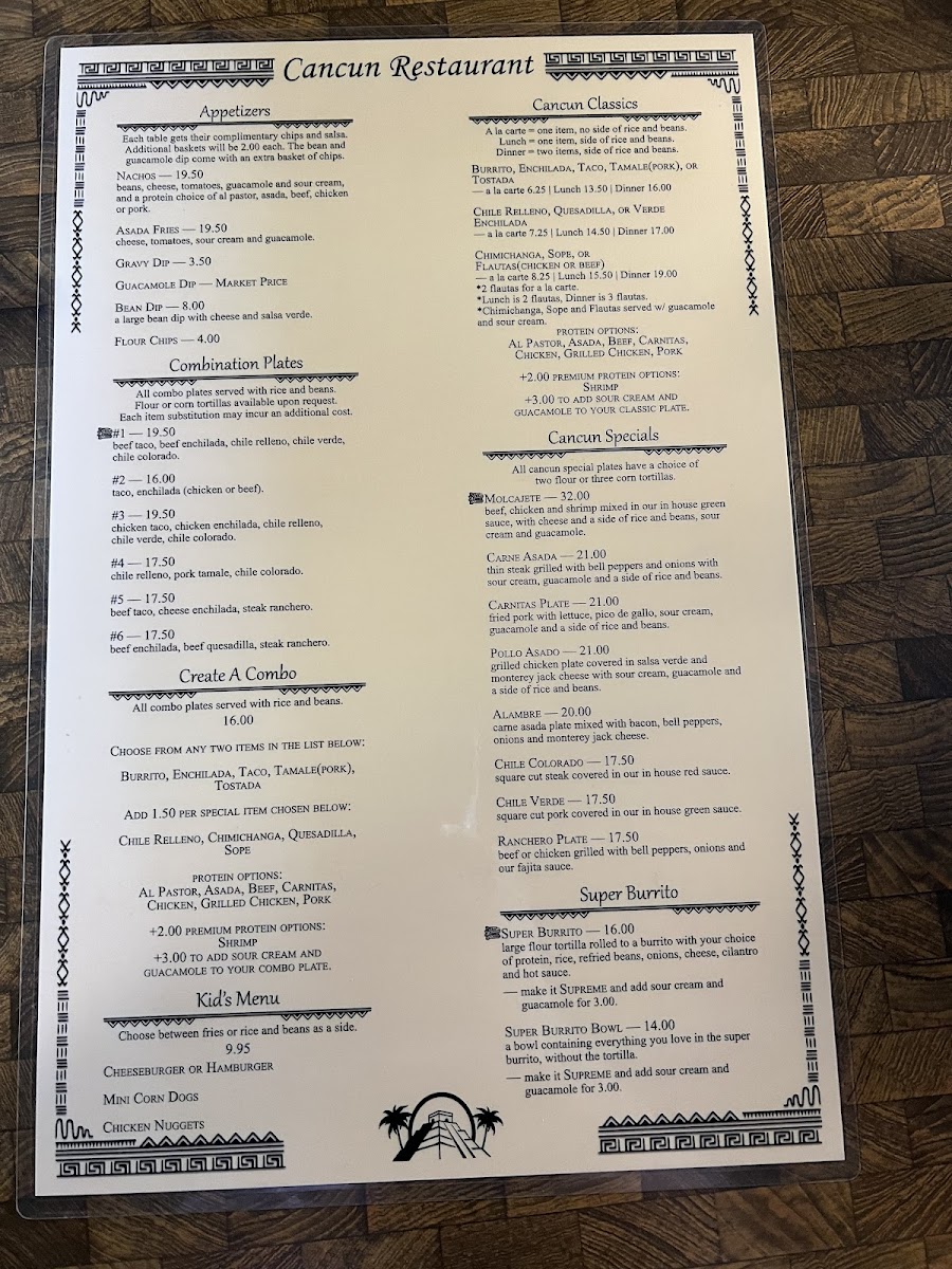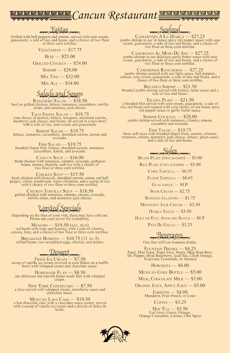 Cancun Restaurant - Escalon Menu