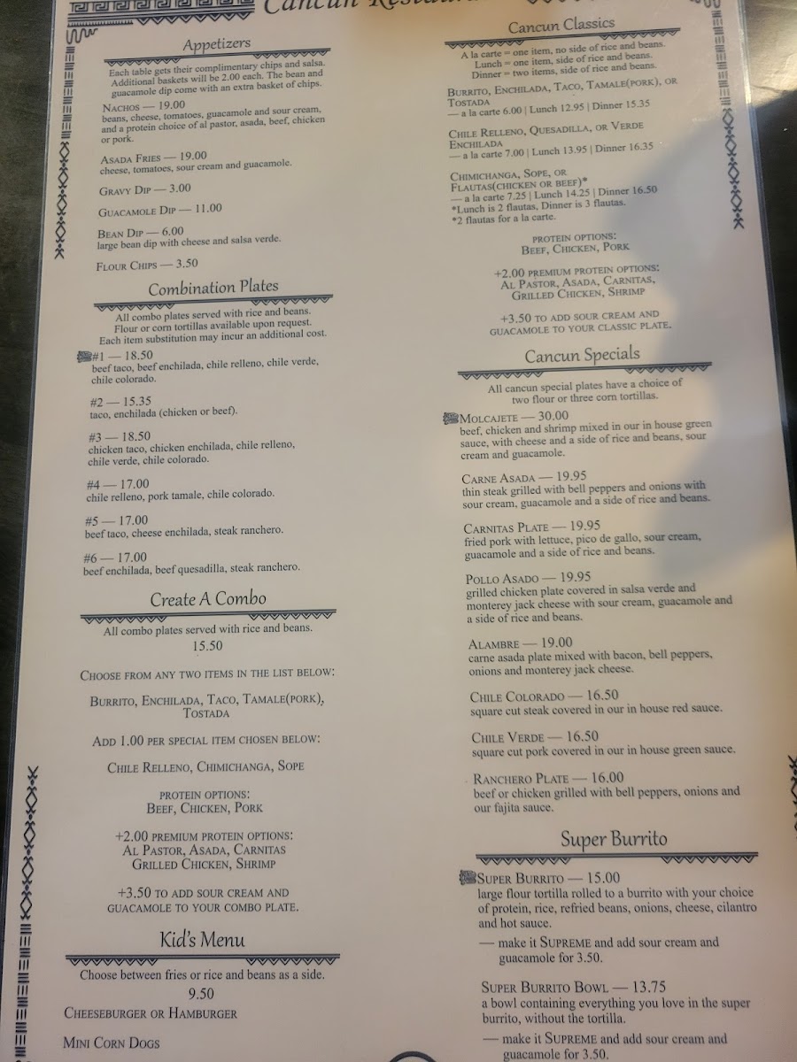 The menu at Cancun Restaurant offers a straightforward, comforting selection of Mexican dishes and drinks that match its casual, inviting atmosphere. You’ll find plenty of classic options designed to satisfy a range of appetites throughout the day, whether you're stopping by for a relaxed lunch or a laid-back dinner with friends and family.